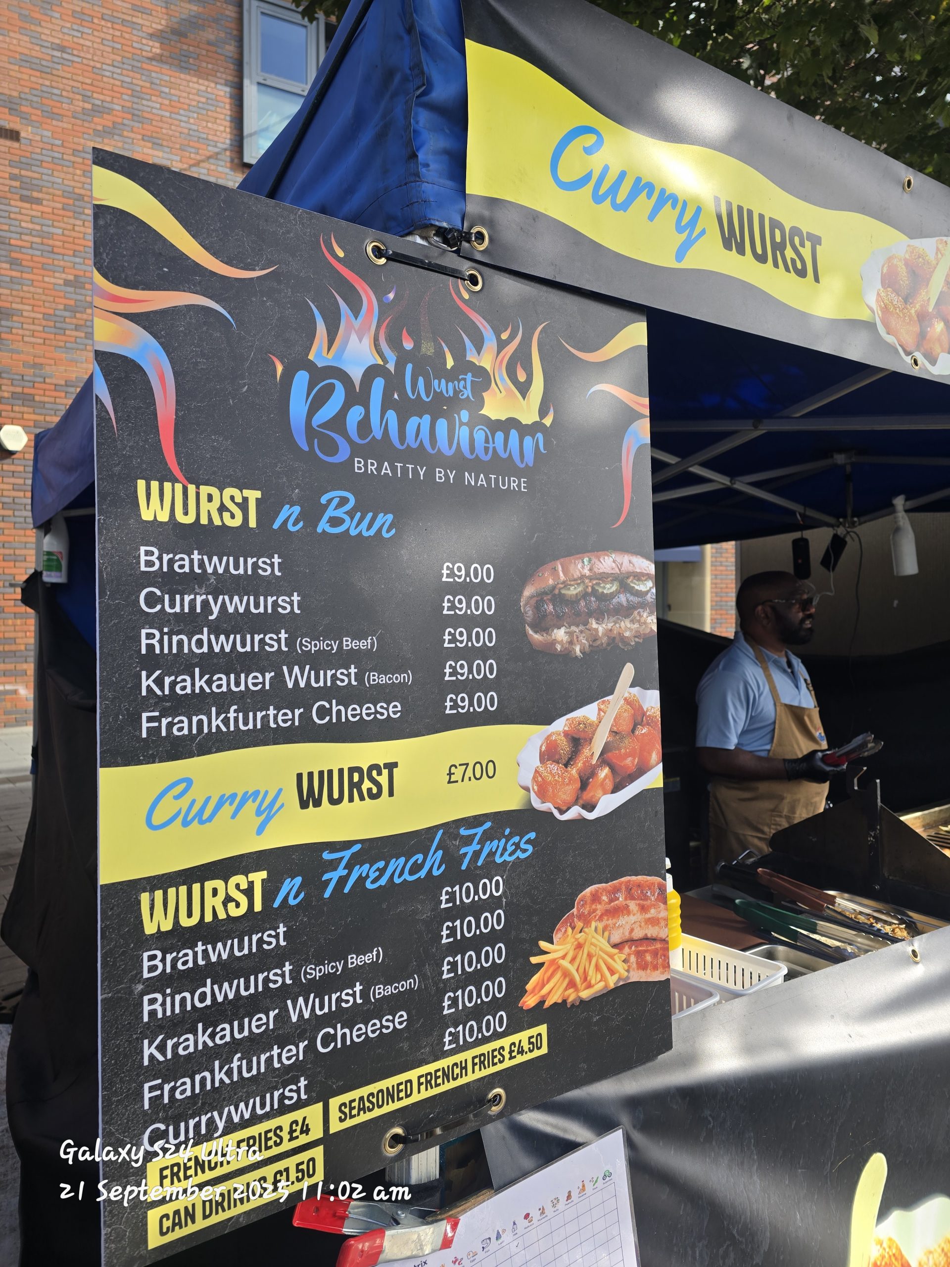 Wurst Behaviour (previously known as German Sausage) are under new management. They offer a selection of generous Bratwurst hot dogs (with or without the bun) with fried onions. Now also serving new Currywurst hotdogs and fries. Instagram: http://instagram.com/wurst_behaviour_uk Trading dates for 2026: April, May, June, July, August, September, October, November, December